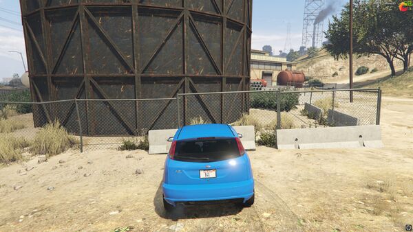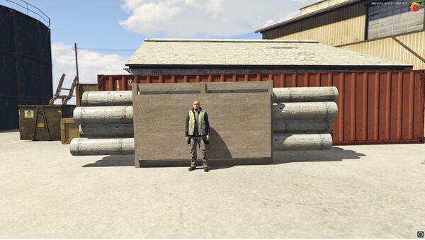 Необходимый нам поворот. Заезжаем в поворот, слева будет большая черная бочка и бетонные блоки, возле блоков можно припарковаться. Необходимый нам человек ждёт возле серых труб и красных цистерн. Тут паркуемся и идём направо.
